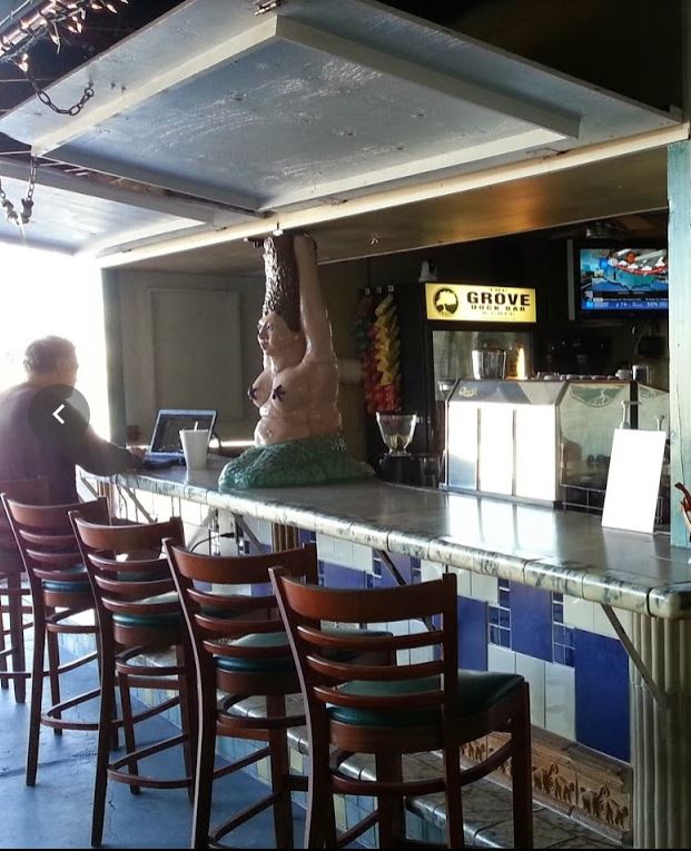 I was chill’n at one of my favorite places tucked away in Port Salerno, FL called the Grove Dock Bar & Cafe. In fact, this exact longitude and latitude was the inspiration for the sequel to my upcoming sci-fi (Silversides) and where Chapter one starts in the year 2026. This place is a BYOF (bring your own Food)… You provide the food, they provide the drinks. Kind of tells ya how local and tucked away it is.