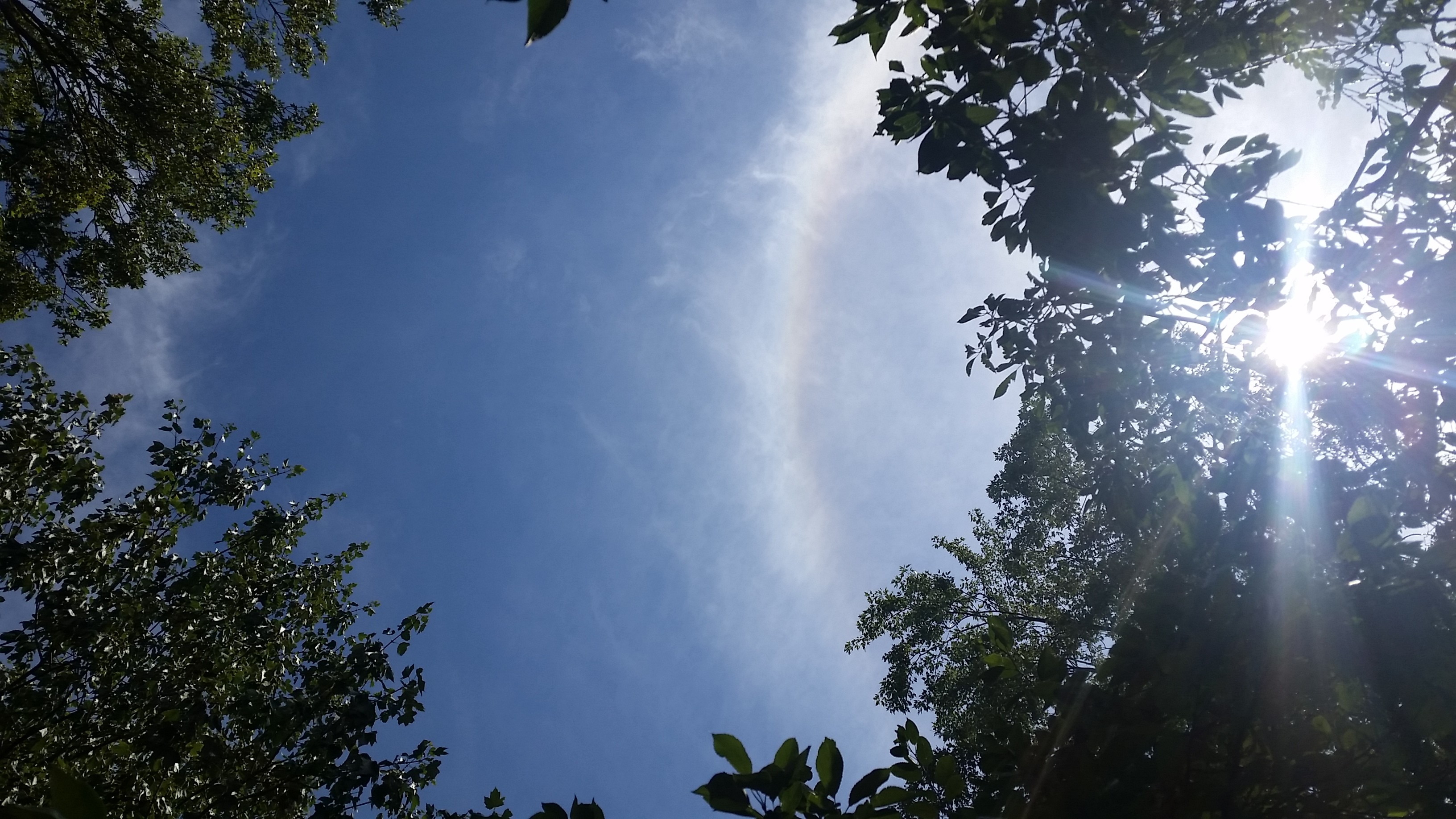 “Geri….” but he stopped short when a flash blinded him from above and he turned his head to shield his eyes. When the overload on his retinas began to clear he looked up and could see the partial circular rainbow through the branches and got up from the hammock and moved out into the clearing of his patio along the cove. The sun was low in the sky behind him,  but above, at the center of the rainbow he could make out a black dot. He stood there, looking up until he felt the skin on his arms begin to crawl and the hairs on his forearms were curling into ash and drifting away. His eyes sparkled, but this time like melting Mylar, and everything went dark. His heartbeat was pounding in his chest and he could hear the blood boiling behind his ears as he dropped onto the pavers and pooled there as bird after bird thudded to the ground around him with the sound of flesh and earth sizzling before a shockwave of dark fire swept over.