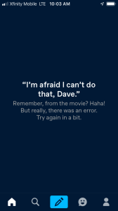 I was trying to open the tumblr app today and the app got confused on network connections and presented me this pop up. What I find amazing is the logic behind the programming, first identifying me by name as well as pulling up this famous quote associated with my name and reasoning that I write SciFi and finally addressing the issue. I love it..