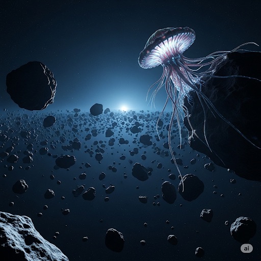 The Asteroid belt sits like a coral reef in our solar system, separating the inner and outer planets. I was duly impressed with what AI came up with— a gift and recognition to my former life as a Marine Biologist, sparking just a bit of cynicism in me that AI knows a bit more than than I am comfortable with. Even the horizon of this image features a smirk.