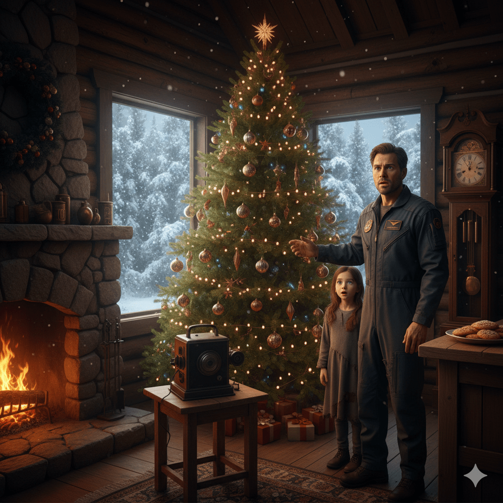 A grandfather clock in the corner chimed softly, a deep, resonant sound that vibrated through the cabin, marking a time that was, and yet, somehow, now. They had fallen, not through space, but through time, landing in a Christmas of a forgotten past.